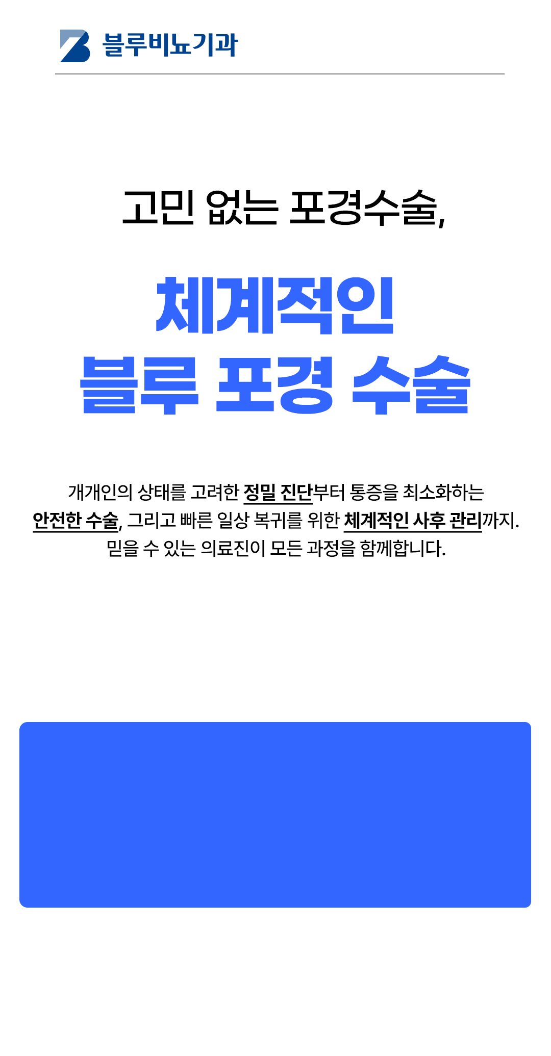 블루 더블업 포경수술은 슬리브 포경수술 방식을 이용하여 수술을 진행한 뒤 남은 속살을 제거하지 않고 귀두 뒤편으로 두툼하게 말아 음경의 볼륨감을 올려주어 확대 효과를 얻을 수 있는 방법입니다.